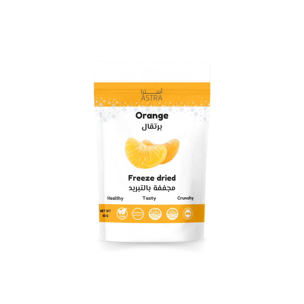- المميزات:غني بفيتامين C: البرتقال المجفف بالتجميد هو مصدر ممتاز لفيتامين C، الذي يعزز جهاز المناعة ويعزز صحة الجلد والشعر.