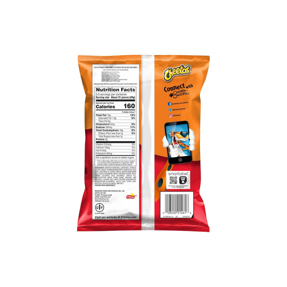 استمتع بطعم شيتوس كرانشى بنسخته الصغيرة المثالية للتناول أثناء التنقل. قوام مقرمش بطعم الجبنة اللذيذ يجعله سناك مثالي لأي وقت خلال يومك، سواء كنت في العمل أو في طريقك.